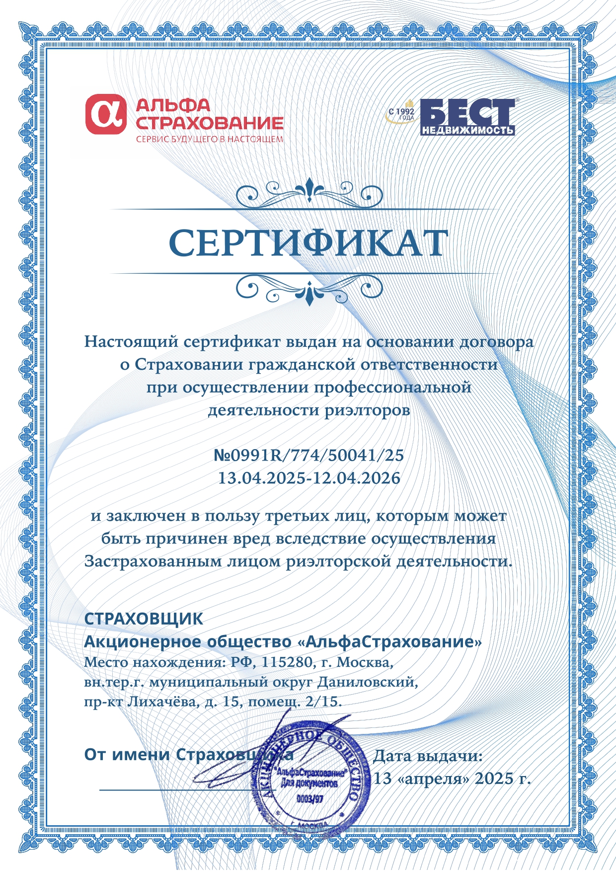 Агентство является членом Российской Гильдии Риэлторов. За 25 лет работы мы заключили более 60 000